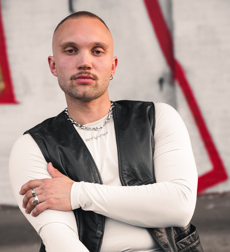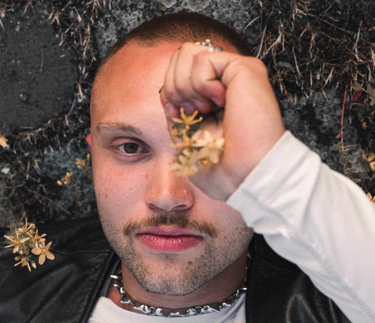 Raue Texturen treffen auf sanftes Licht und verbinden eine schlichte Umgebung mit der Schönheit des Models.