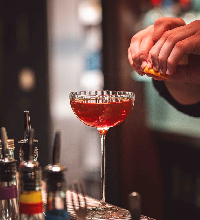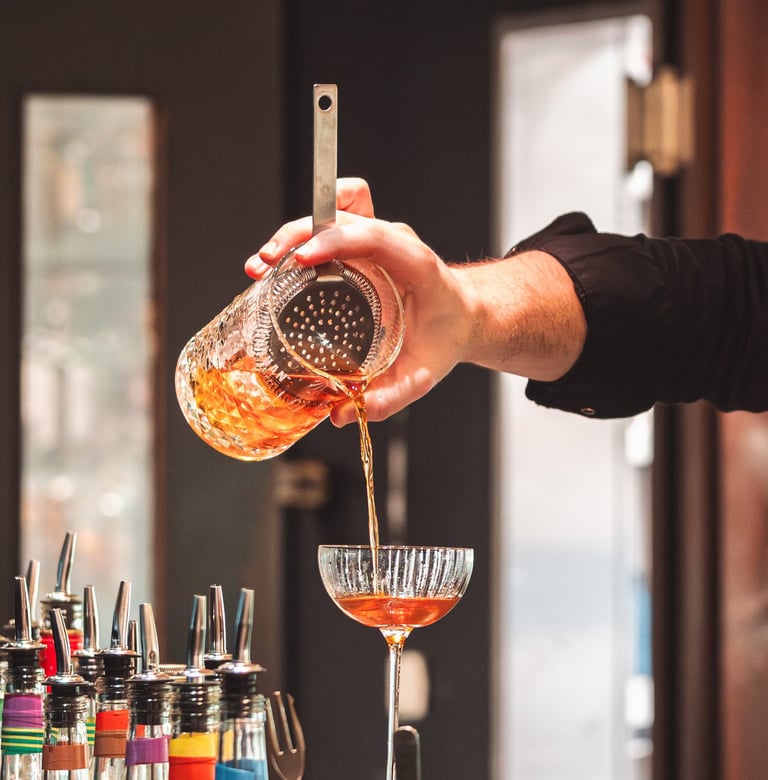 Wir wollten die Zubereitung eines klassischen Drinks mit detaillierten und weitwinkligen Aufnahmen dokumentieren,