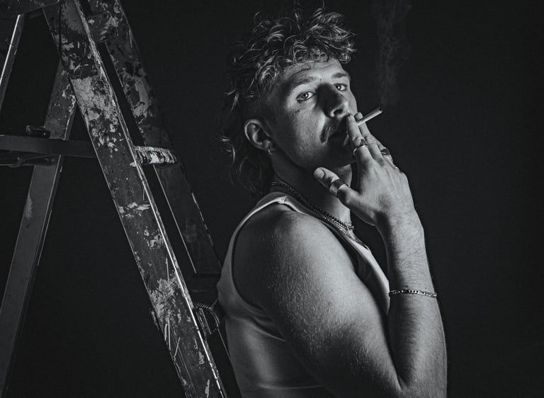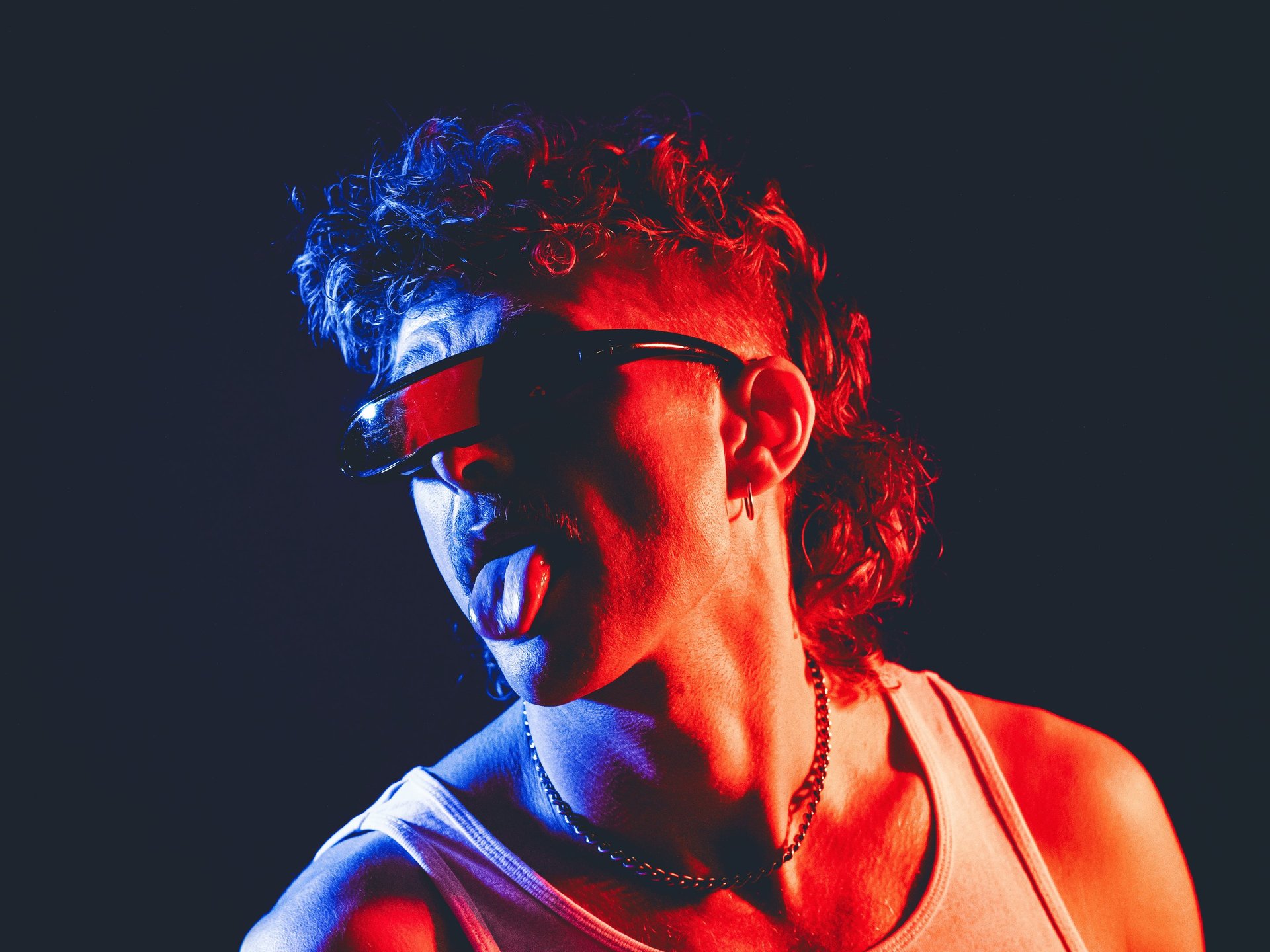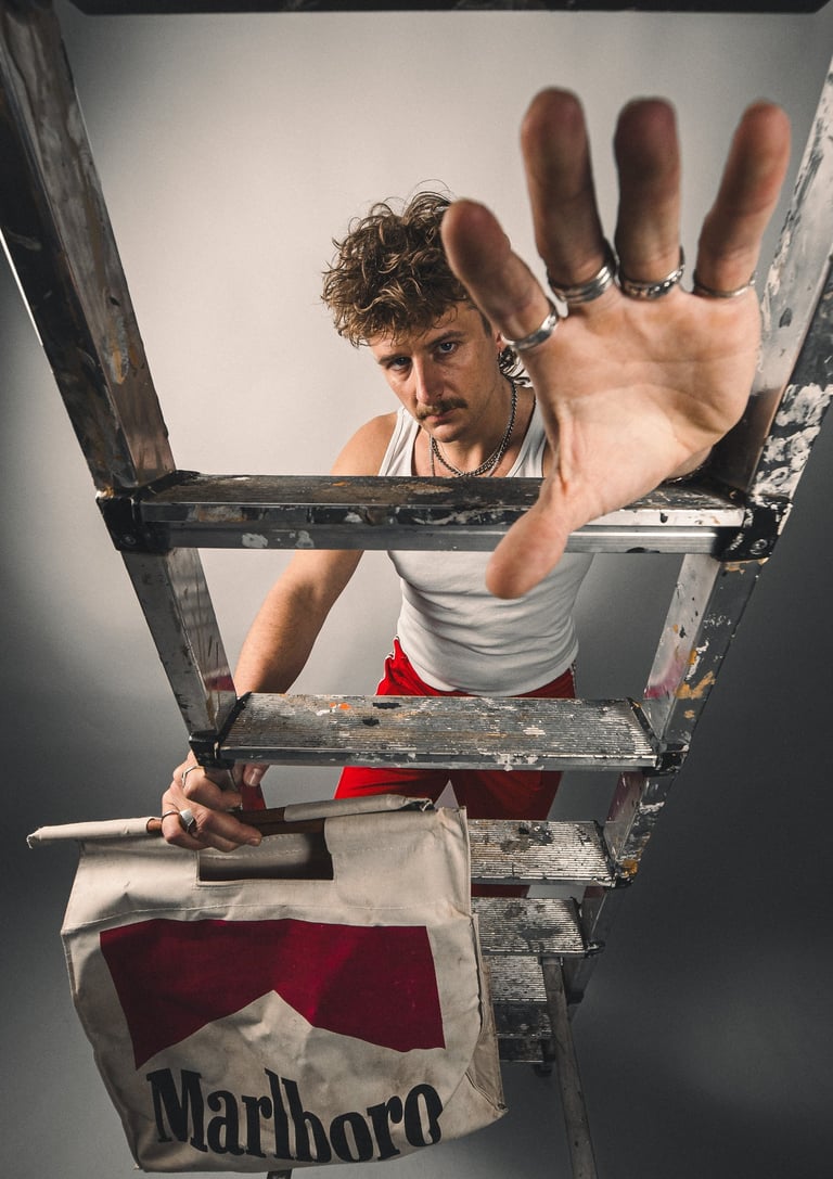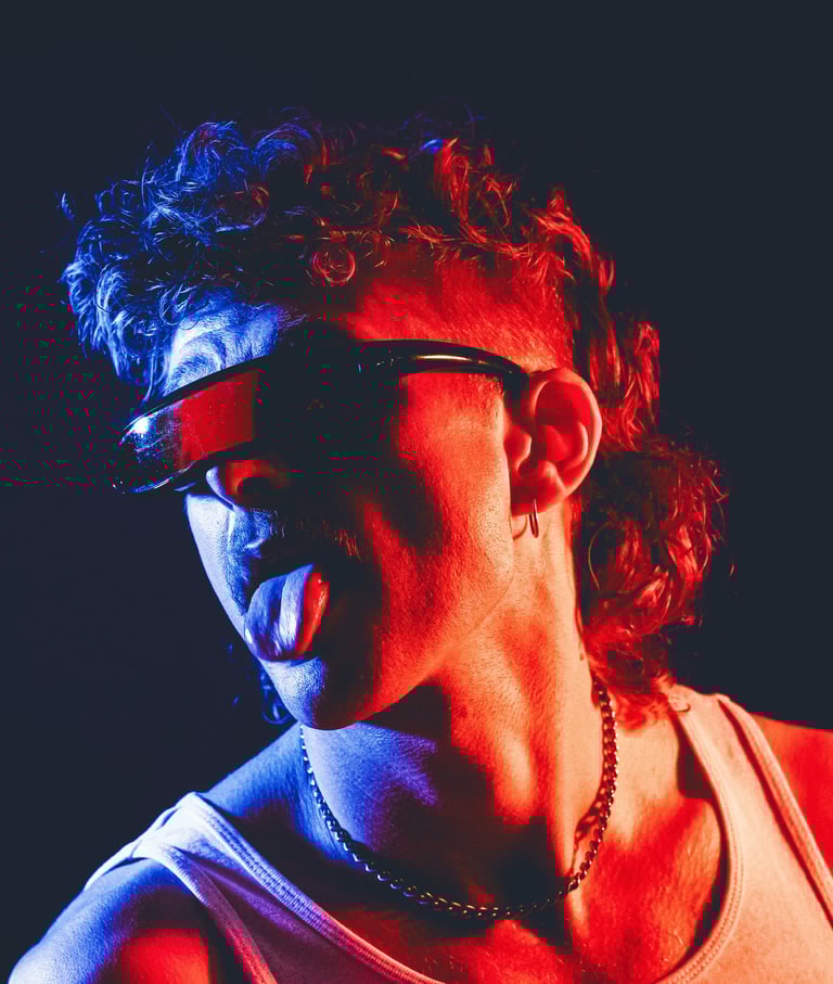 High-energy contrasts, 80s vibe, streetwear.