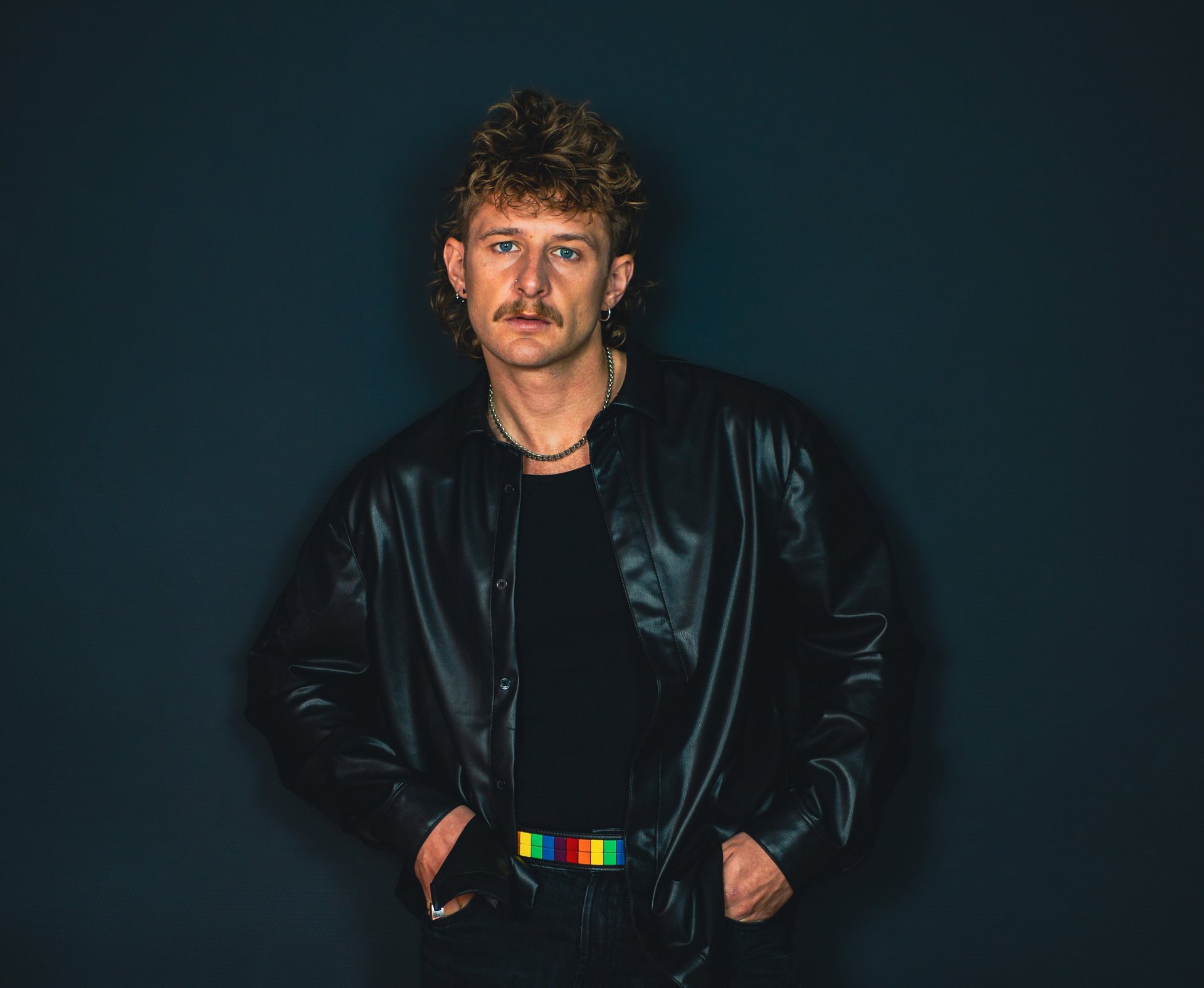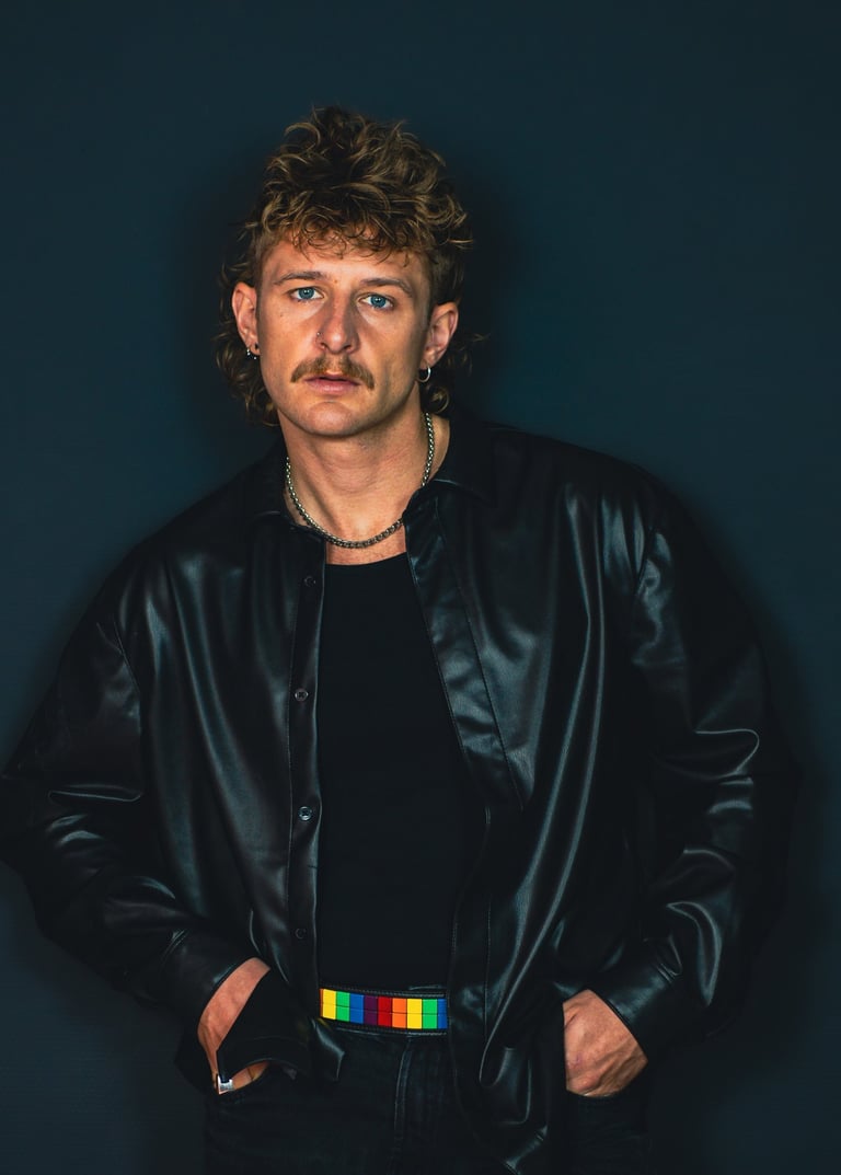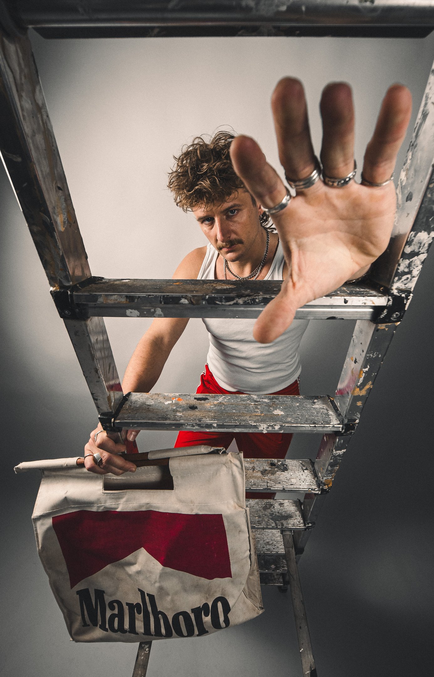 High-energy contrasts, 80s vibe, streetwear.